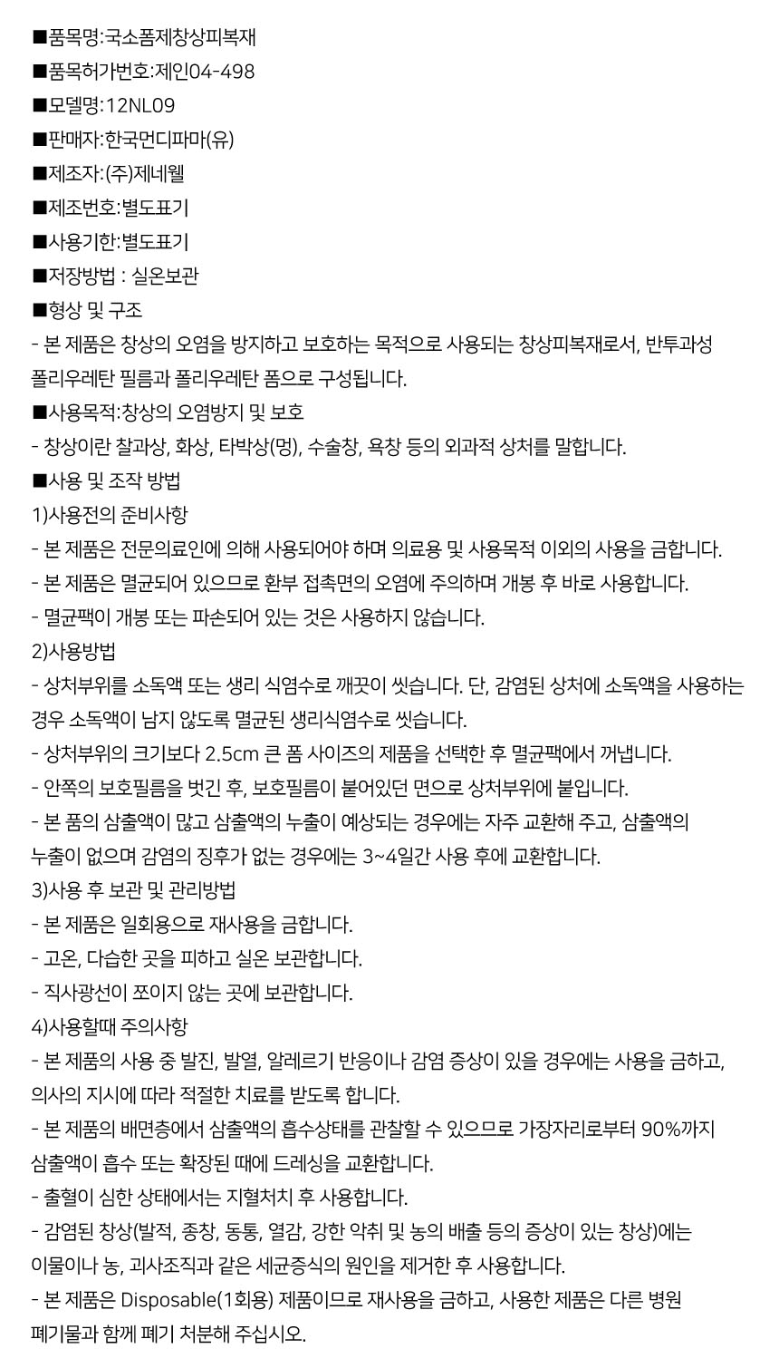 > 메디폼 친수성 폼 드레싱 10x10cm 2mm 1박스 10매